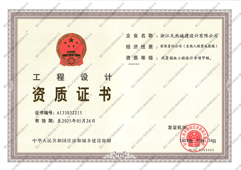 热烈祝贺集团园林设计资质升级成功,取得住房和城乡建设部颁发的风景园林工程设计专项甲级资质,天然城建院一举晋升甲级院行列。至此,集团现有控股甲级院五家,进一步提升了品牌形象和市场竞争力。