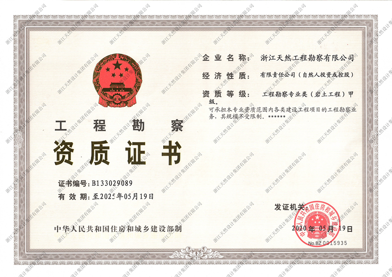 另外,同时祝贺天然勘察院岩土工程甲级资质顺利延续,保障了集团岩土工程勘察设计领域的市场竞争力。