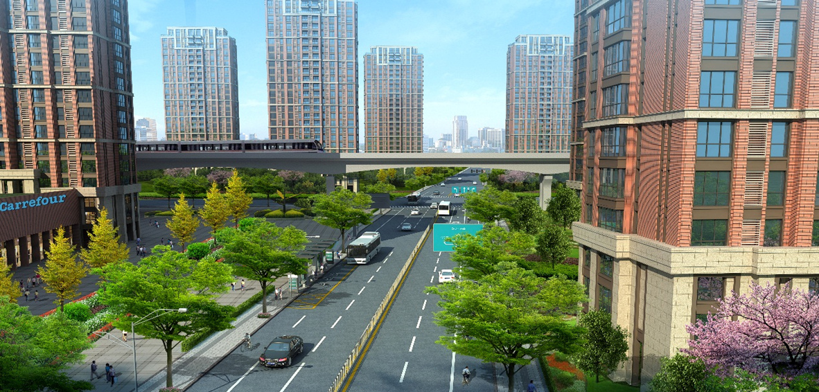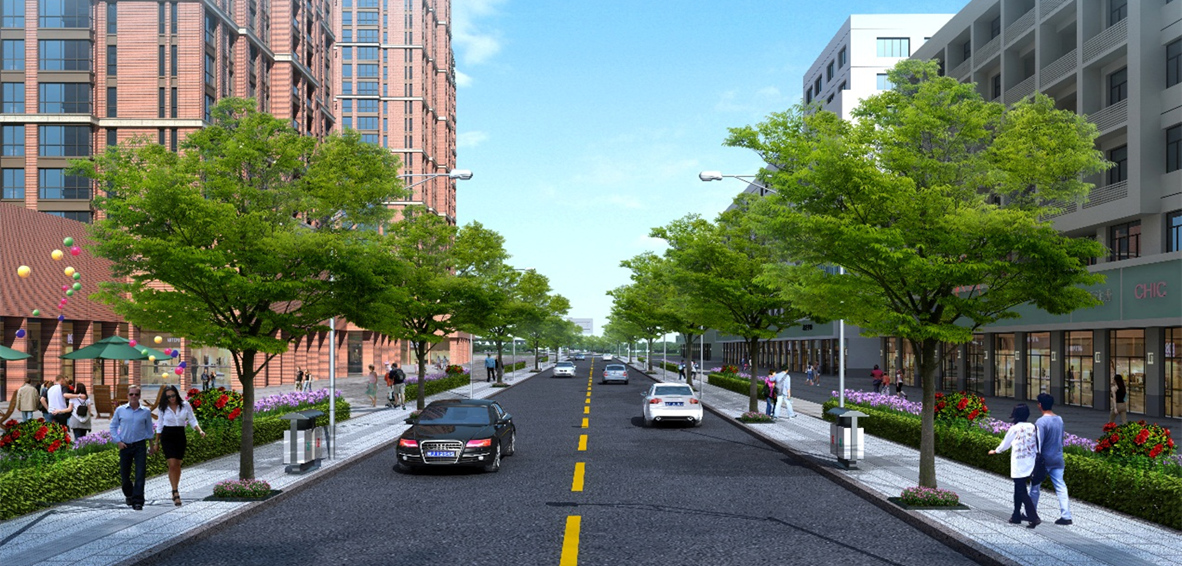 项目规模:道路总长1440米,红线宽36-52米 设计内容:道路、交通、绿化等